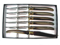 Beau coffret contenant 6 couteaux de table Laguiole au tranchant remarquable.